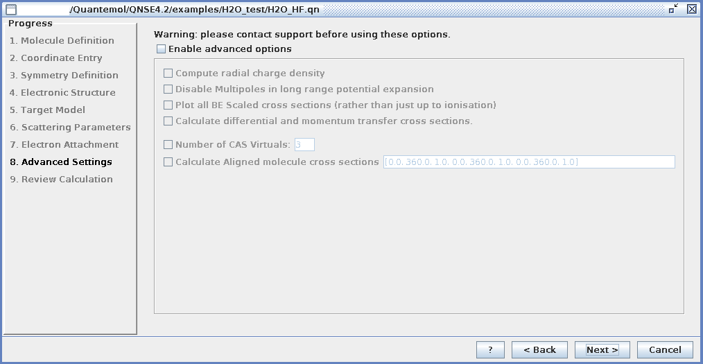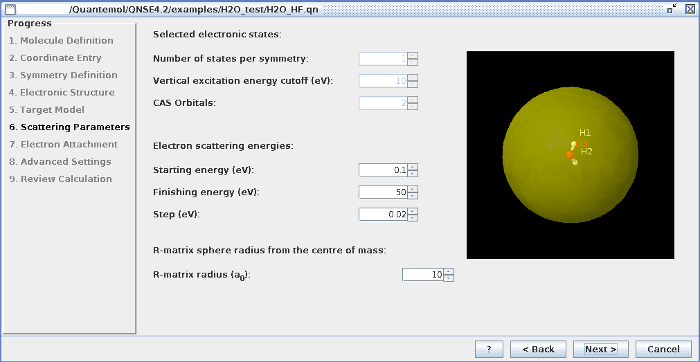 計算コードとして,この分野における最先端の UK molecular R-matrix code が使用されています。Graphical User Interface が準備されており,設定項目も限られているので,入力項目の数は多くありません。