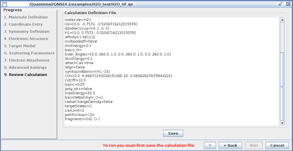 Quantemol-N の入力画面
