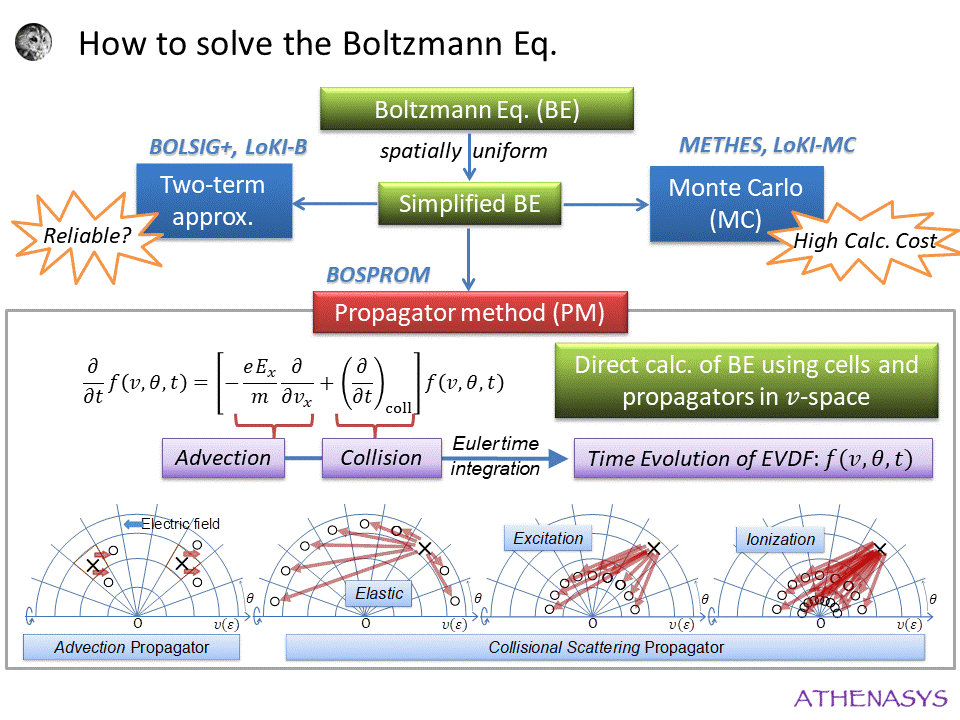 Figure 2 shows methods to solve the Boltzmann equation, where the propagator method is spotlighted.