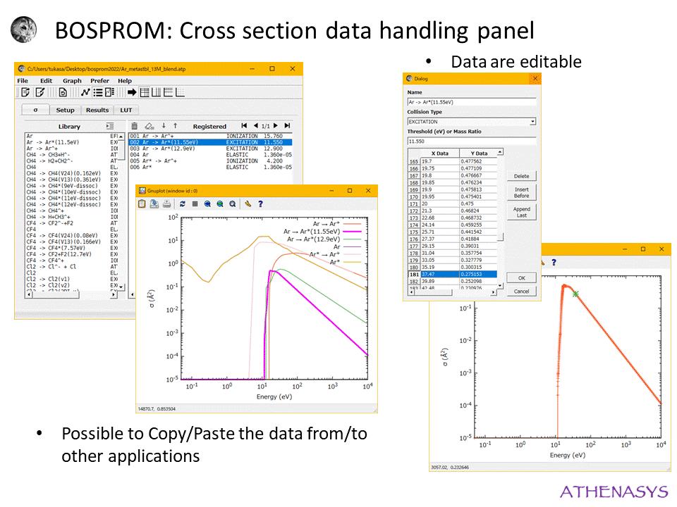Figure 4 shows the cross section data handling panel of BOSPROM. The free software GNUPLOT is used as a graphical viewer.